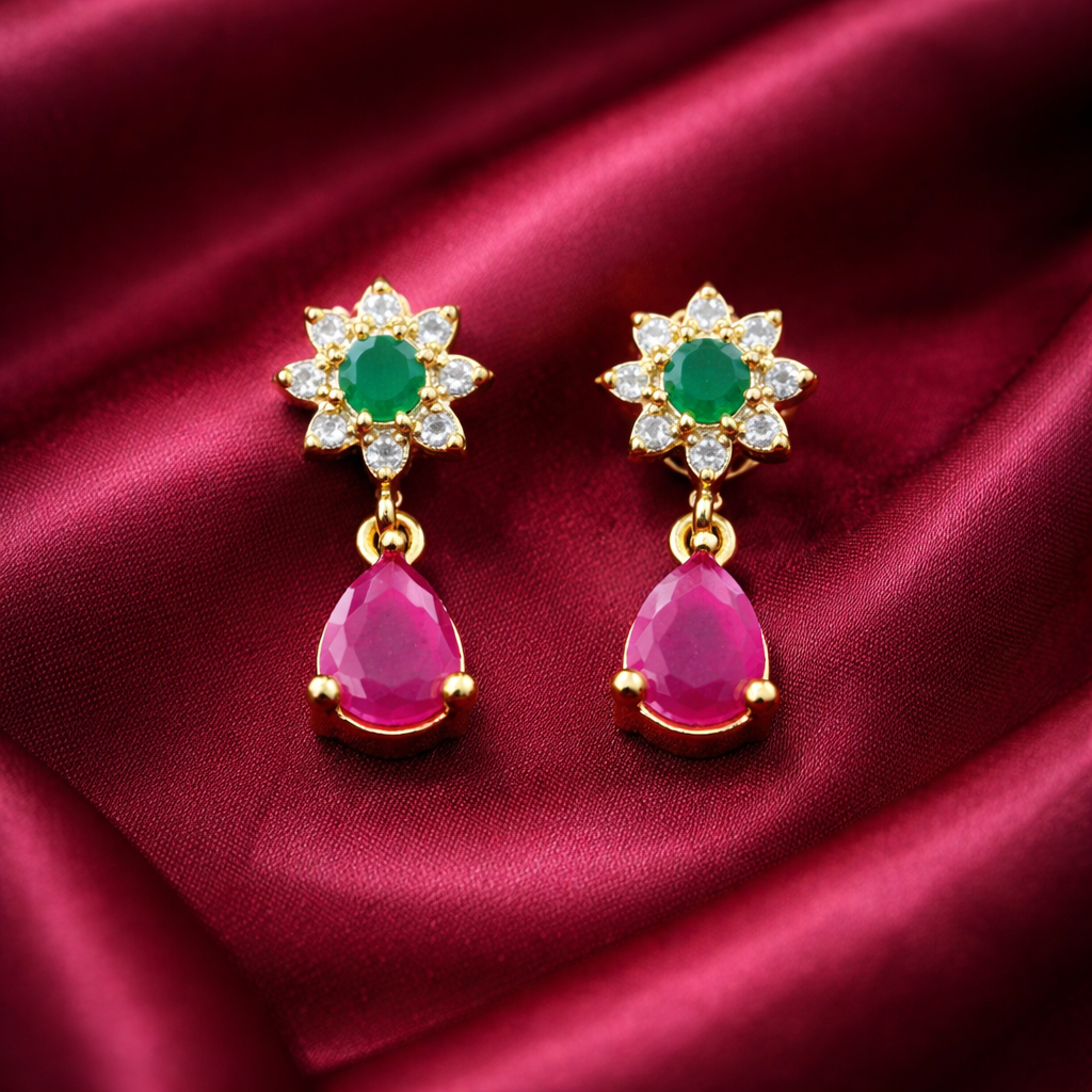 Diamond/Stone: American Diamond, Emerald Stone & Ruby Drop